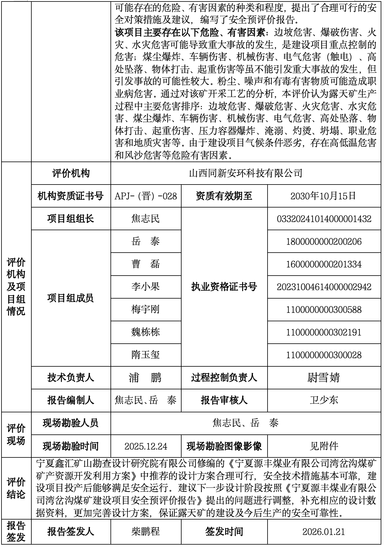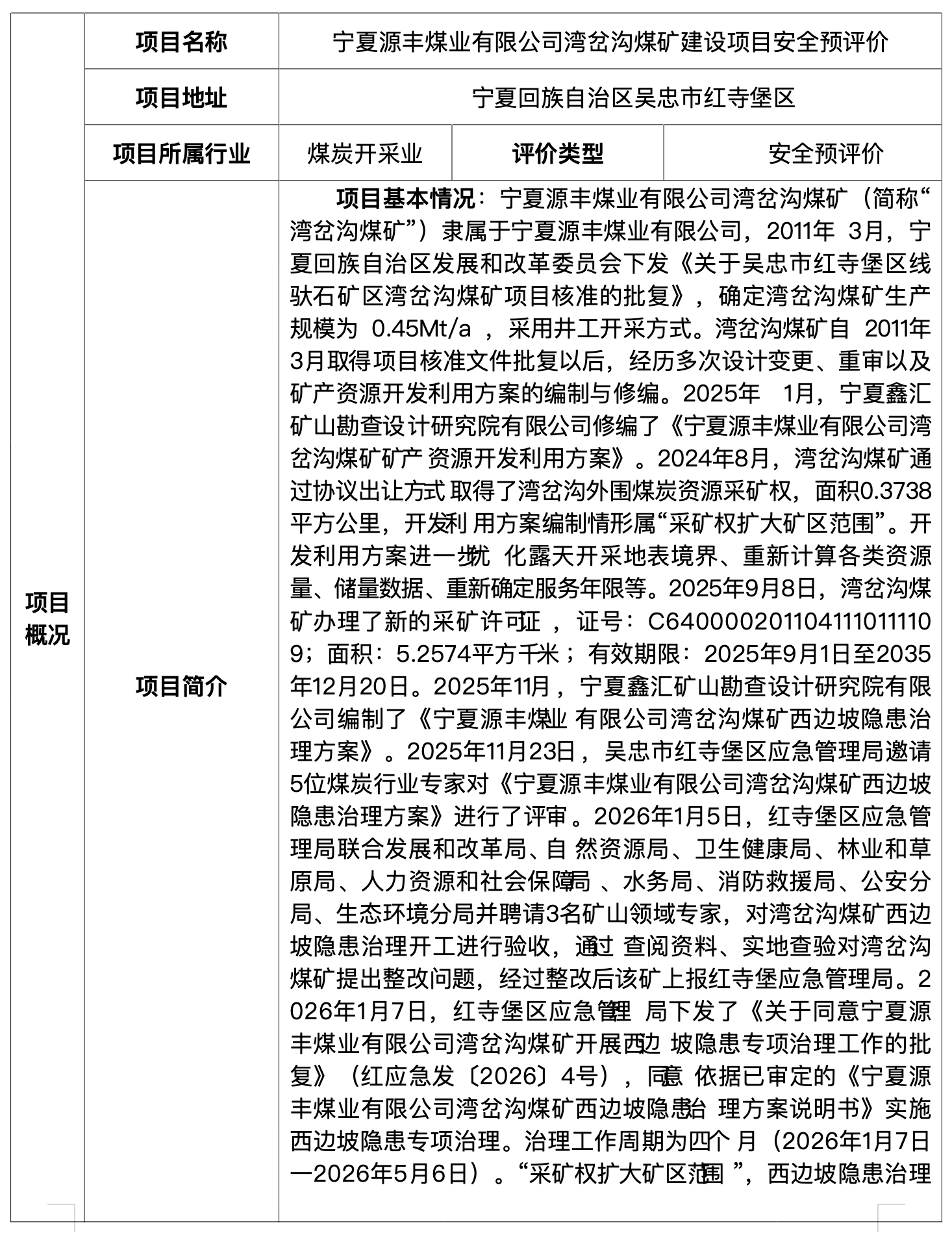 宁夏源丰煤业有限公司湾岔沟煤矿建设项目安全预评价